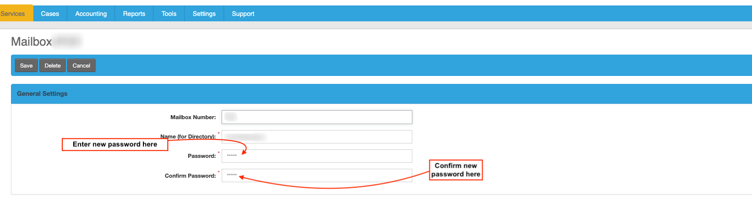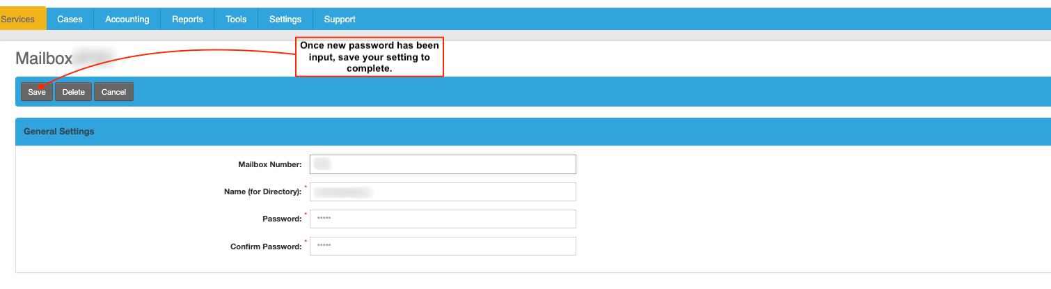 **Please note: Default Mailbox password is the extension number of the user assigned to that mailbox.