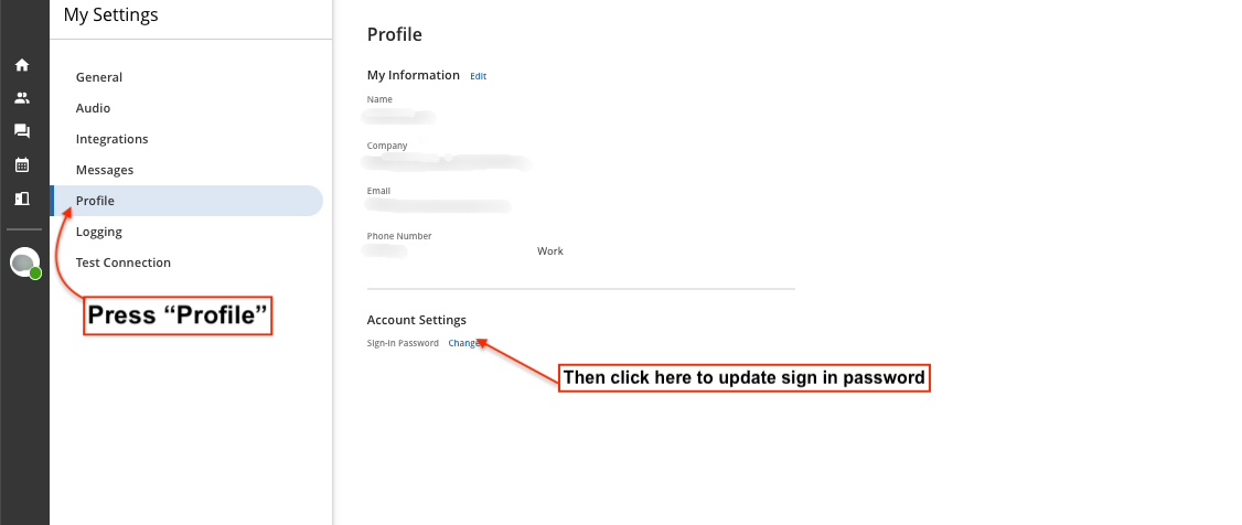 - Once inside your account settings, click into Profile and select the Change button next to Sign-in Password